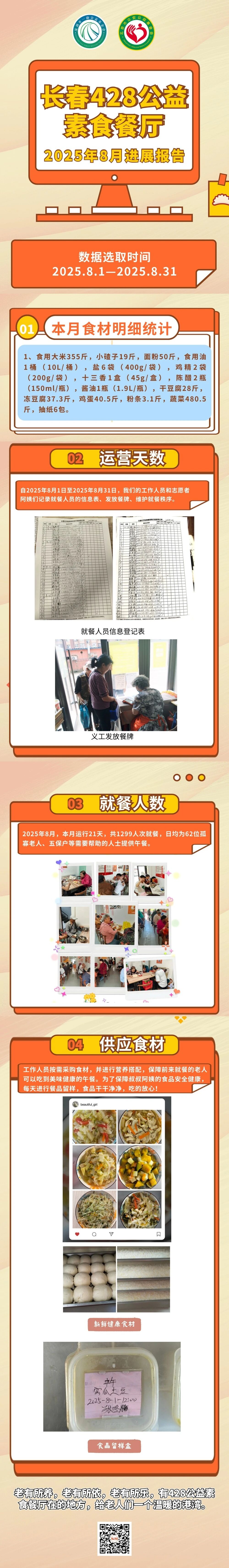 长春428公益素食餐厅在各位爱心人士的关心与支持下,运营状况稳步提升。不断优化菜品口味,丰富菜品种类,照顾老人的口味需求,让每一位来到餐厅的老人都能感受到家的温暖。