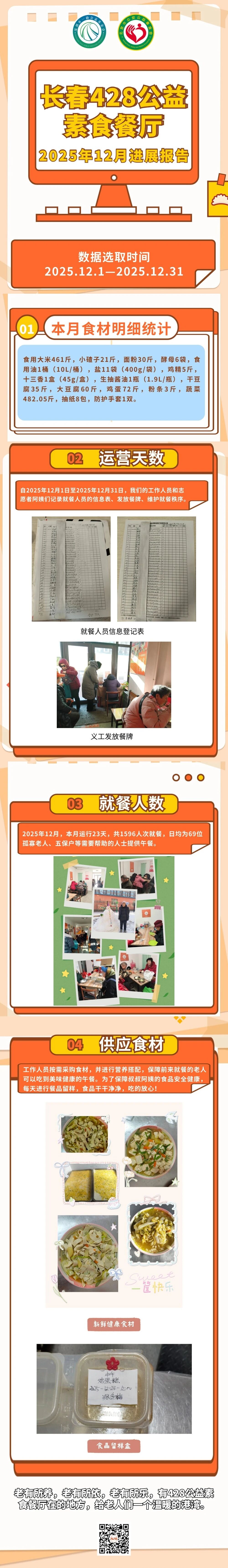 12月,我们用心打磨每一道菜品,在提升口味与丰富种类上持续深耕,希望以更健康、更可口的素食,为前来就餐的长者们带去舌尖上的慰藉与惊喜。我们始终相信,一餐一饭,皆是温暖;一筷一勺,满是关怀。