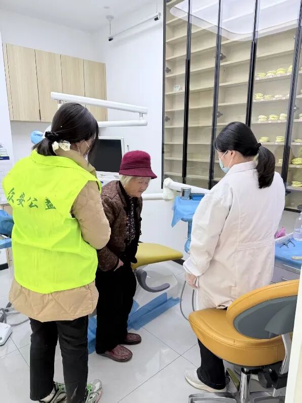 得知凡奶奶的困境后,基金会第一时间为她对接了专业的口腔医疗机构。经过详细检查,医生发现长期缺牙不仅导致她咀嚼功能基本丧失,残留的牙根还引发了持续的牙龈炎症,如不及时处理,甚至可能危及全身健康。志愿者们耐心地蹲在凡奶奶身旁,用朴实的话语反复向她说明治疗方案:"奶奶,我们会为您量身定制全口义齿,以后您就能自己吃饭、慢慢嚼东西了!"