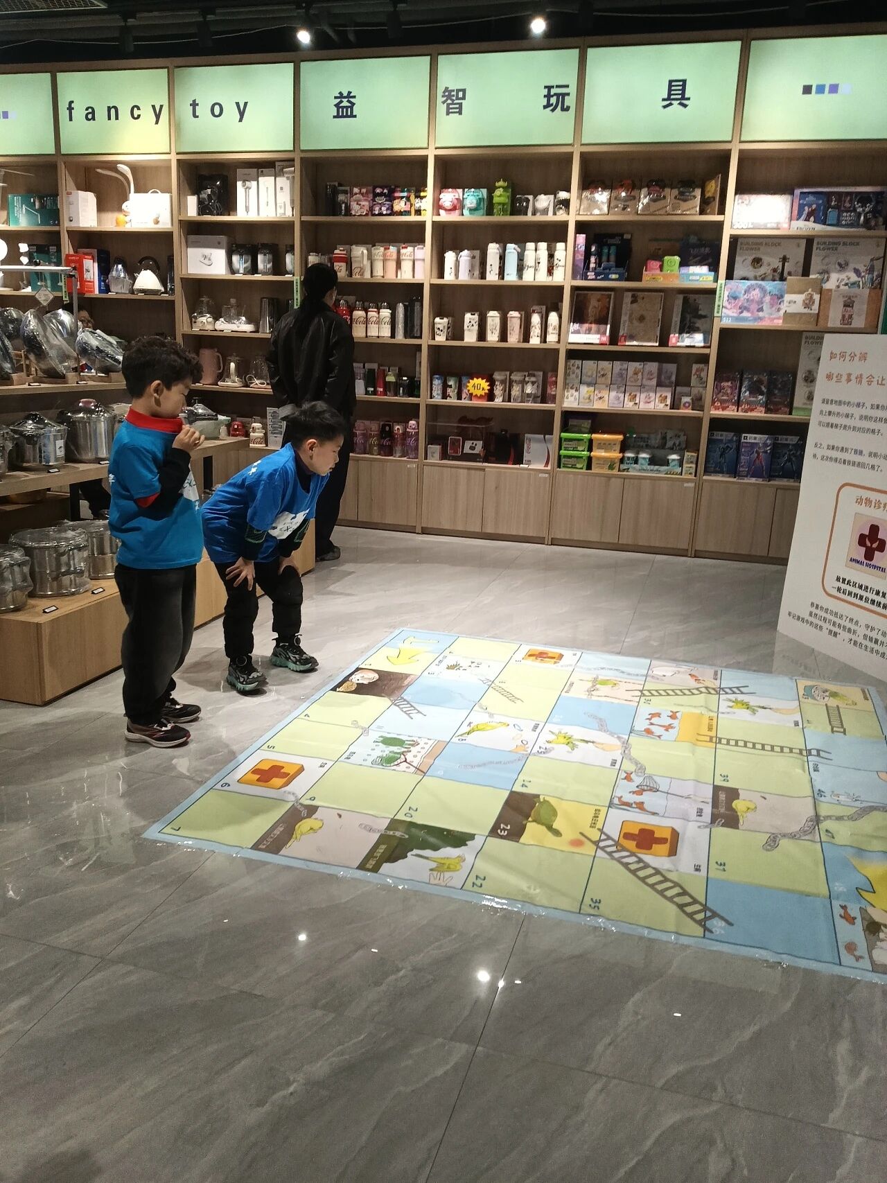 活动结束后的下午,书店恢复了往日的安静。但那块彩色的游戏地贴,还留在原地。工作人员说,会多保留几天,让路过的孩子也能玩一玩。