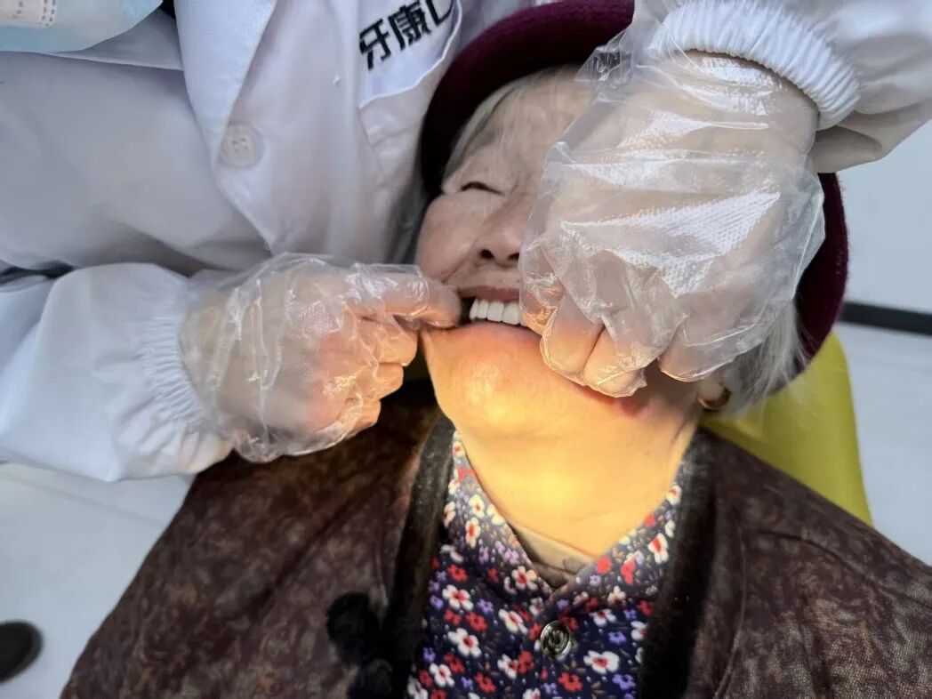 我们的志愿者与凡奶奶的初遇,看到凡奶奶空荡荡的牙床,以及提起“吃肉”时眼中一闪而过的向往,让我们深知:对于困境老人而言,牙齿的缺失从来不是小事,它剥夺的不仅是咀嚼的能力,更剥夺了老人的幸福感。第四次全国口腔健康流行病学调查显示,65 至 74 岁的老年人中,有超过八成(81.7%)正面临牙齿缺失的困扰。凡奶奶的故事不是孤例,在许多医疗资源匮乏的偏远地区,"老掉牙" 甚至被默认为常态。老人们习惯性地将品尝美食的心愿悄悄藏进皱纹里,日复一日地承受着无法畅快咀嚼的无奈。正是这样的画面,点燃了众安基金会 "口腔健康万里行" 项目的初心 —— 我们愿以绵薄之力,让每一位老人的晚年,重新找回食物的香味、生活的滋味。
