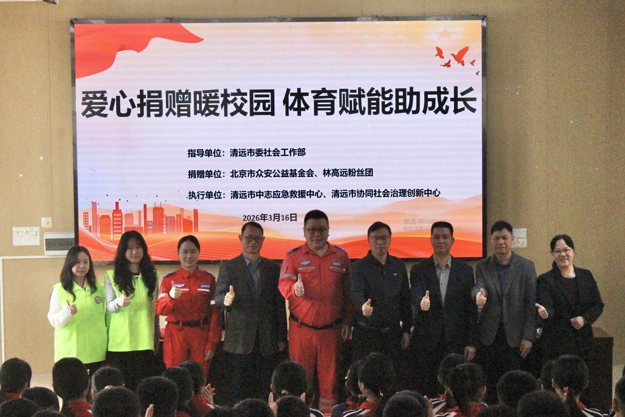 这次捐赠的指导单位里,有一长串名字:中共清远市委社会工作部、北京市众安公益基金会、清远市中志应急救援中心、清远市协同社会治理创新中心,还有双鱼品牌和微公益平台。
